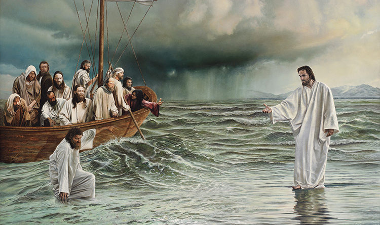 Pietro allora gli rispose: «Signore, se sei tu, comandami di venire verso di te sulle acque». Ed egli disse: «Vieni!». Pietro scese dalla barca, si mise a camminare sulle acque e andò verso Gesù. Ma, vedendo che il vento era forte, s’impaurì e, cominciando ad affondare, gridò: «Signore, salvami!». E subito Gesù tese la mano, lo afferrò e gli disse: «Uomo di poca fede, perché hai dubitato?».