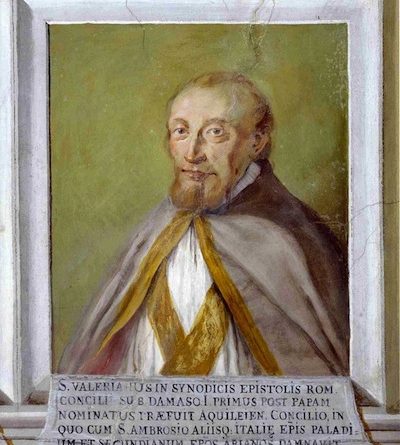 Valeriano, vescovo di Aquileia fra il 370 circa e il 387/388, rappresentò l’inizio della più bella stagione della Chiesa di Aquileia ; presso il centro episcopale fiorì un notevole seminario di studi teologici e di formazione ascetica. La sua presenza pastorale costituì il segno delle ripresa della fede nicena contro l’arianesimo che per un ventennio aveva dominato in Occidente, specialmente a Milano. La sua professione di fede fu apertamente pronunciata in occasione del Concilio delle Chiese occidentali, da lui presieduto, che si tenne ad Aquileia il 3 settembre 381, con la partecipazione di santi vescovi dell’Italia, della Gallia, dell’Africa, fra cui S. Ambrogio di Milano.